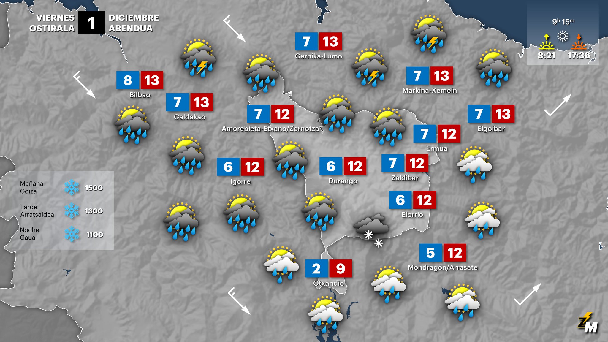 Tiempo revuelto fresco con lluvias para el viernes GRAFISMO: Unai García