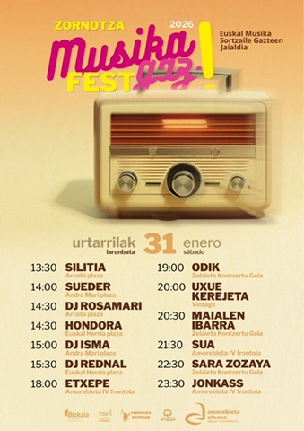 AMOREBIETA-ETXANO | La localidad zornotzarra se prepara para vibrar con la energía y la creatividad de los nuevos talentos de la música vasca en la edición 2026 del Zornotza Musikagaz Fest 2026. La cita, que tendrá lugar el sábado 31 de enero, llenará las calles y recintos de la localidad de sonidos frescos, variedad de estilos y propuestas emergentes.