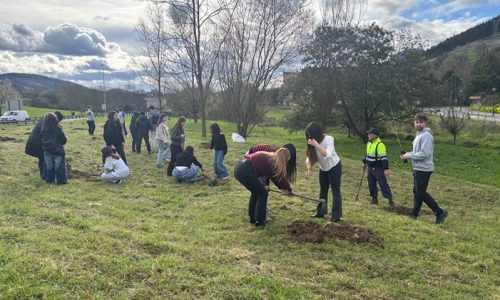 Los árboles, proporcionados por la Diputación Foral de Bizkaia, son ejemplares de la especie autóctona Quercus robur (roble del país), y su plantación tiene como objetivo contribuir al enriquecimiento de la biodiversidad local y promover el compromiso medioambiental en la comunidad.