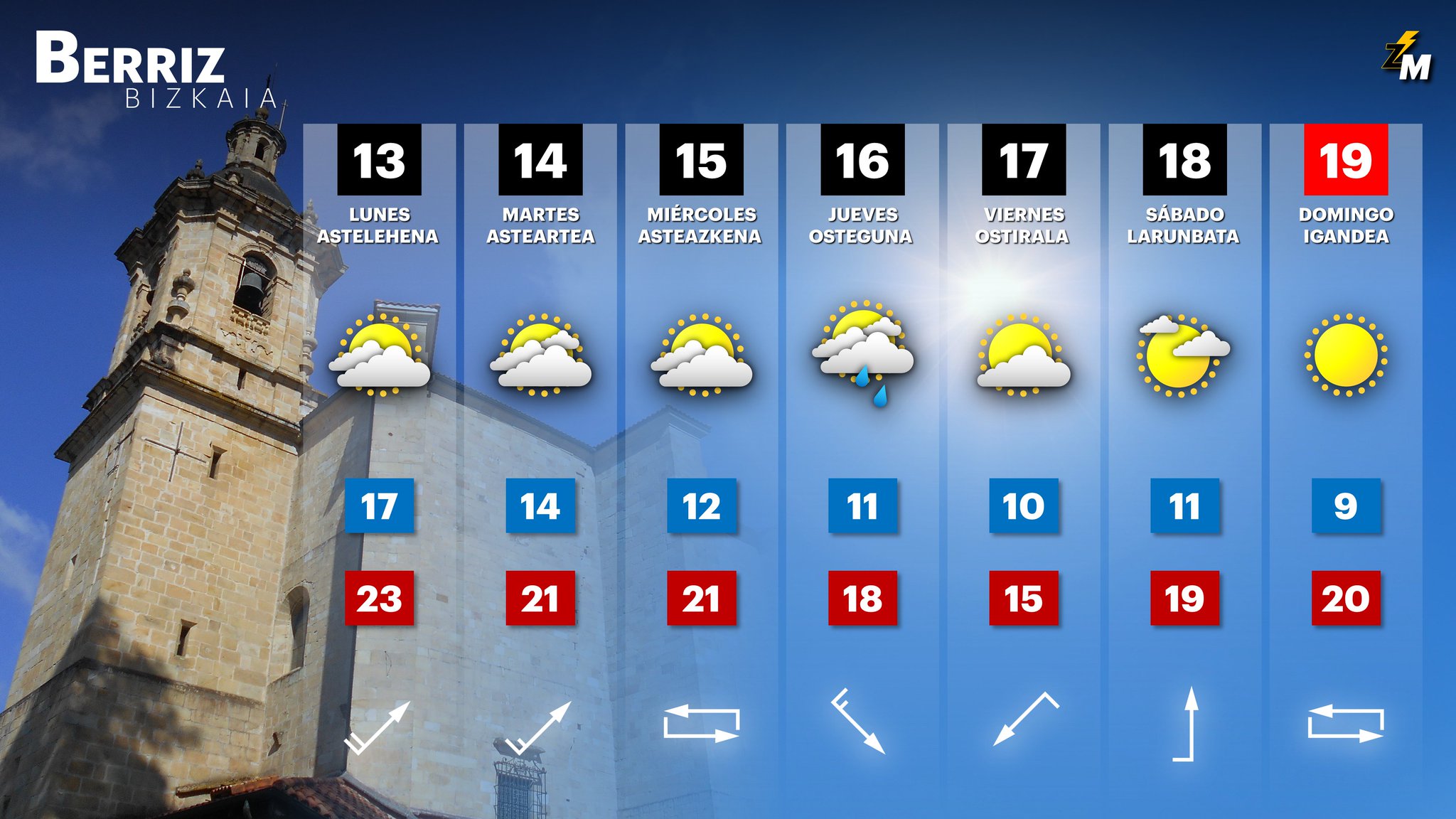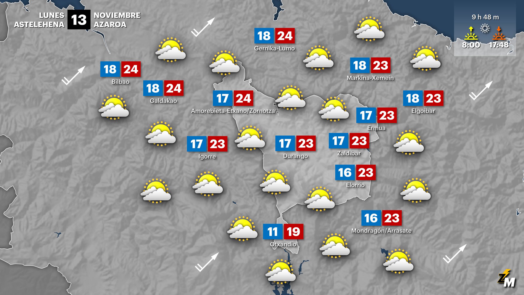 EGURALDIA | El ‘Veranillo de San Martín’ parece que llegará esta semana a la comarca, por lo menos las temperaturas serán muy suaves, en torno a los 20 grados y además disfrutaremos de poca lluvia y muchos ratos de sol.