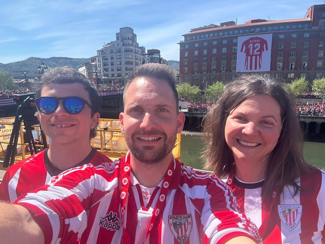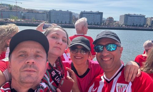 BIZKAIA | Los aficionados zurigorris vivían un día histórico. Miles de personas abarrotaban desde primera hora ambos lados de la ría. La fiesta con la Gabarra arrrancaba a las a las cuatro y media de la tarde desde el Marítimo y con una hora de retraso lleganban sobre las siete y media al recibimiento en el Ayuntamiento de Bilbao, donde les esperaba el alcalde, Juan MaAsri Aburto. Allí Iker Muniain, convertido el gran maestro de ceremonias salía al balcón ante los aplausos y cánticos de los miles de asistentes.