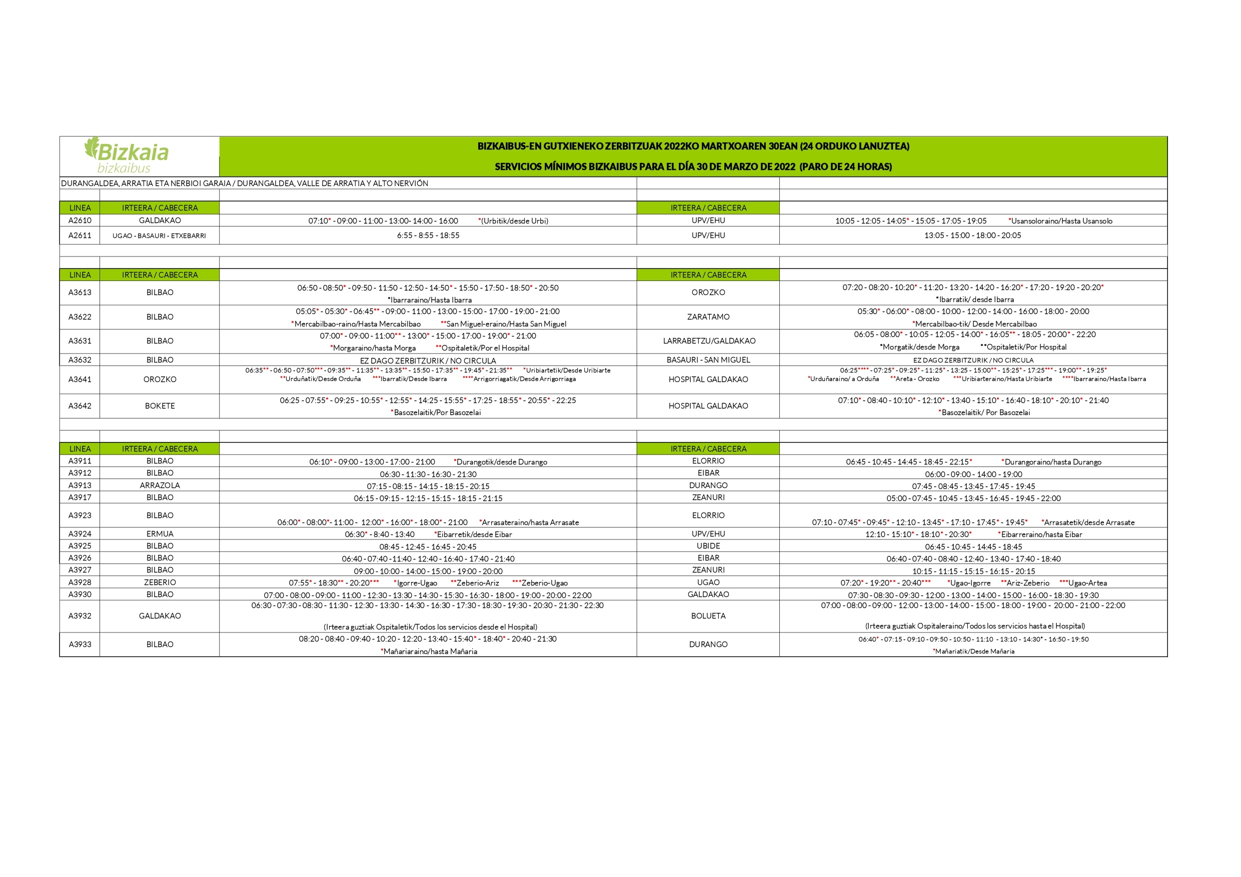 DURANGALDEA | 22 líneas se verán afectadas este miércoles, 30 de marzo, por el paro de 24 horas convocado por el comité de empresa de la empresa prestataria del Servicio Bizkaibus, Avanza Durangaldea, S.A. Se trata de la segunda jornada de huelga en este mes de marzo.