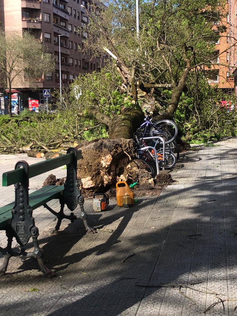 DURANGO | Como consecuencia de los fuertes vientos dos árboles han caído en Madalena, justo al lado de la parada del bus. Por su parte fuentes de la Policía Municipal han confirmado que no se han registrado heridos, aunque las primeras informaciones apuntaban que podía haber alguna personas afectada, aunque no precisaba atención médica.
