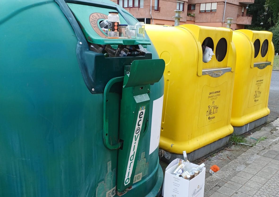 DURANGO | Buenas tardes mi queja es la siguiente frente a la cafetería Irala, en el barrio San Ignacio, el contenedor del cristal lleva varios días lleno, se está dejando los envases fuera, con lo que algún niño se puede hacer alguna avería.