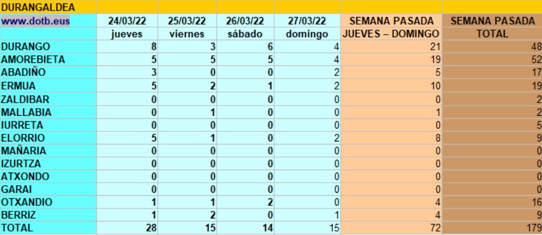 DURANGALDEA | La comarca cierra la semana con 179 nuevos casos, 72 de jueves a domingo. Comparando con la anterior supone en ligero ascenso de 27 positivos, teniendo en cuenta que se registraron 152, 82 de jueves a domingo.