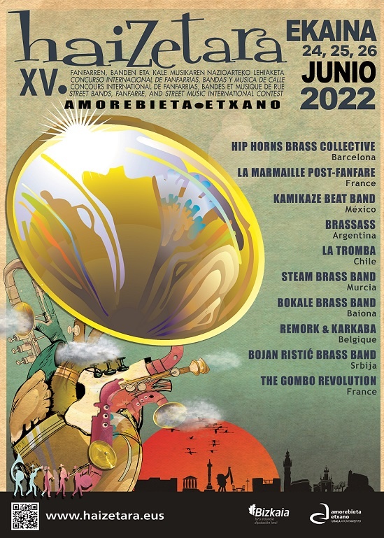 AMOREBIETA-ETXANO | Haizetara, el Concurso Internacional de bandas de calle organizado por el Ayuntamiento de Amorebieta-Etxano ya tiene cartel. Diez bandas internacionales de diferentes procedencias competirán en el concurso los días 24, 25 y 26 de junio. El concurso, que no ha celebrado sus últimas dos ediciones debido a la Covid 19, estará de regreso este 2022 con la 15º edición. Este año se han inscrito en el concurso organizado por el Ayuntamiento 40 bandas de 10 nacionalidades diferentes; y en relación al estado, de 7 comunidades distintas. Una vez analizada cada propuesta, la organización de Haizetara ha seleccionado 10 bandas en base al material gráfico, visual, sonoro y al curriculum que los grupos inscritos han remitido. Asimismo, se han tenido en cuenta los siguientes criterios: la calidad artística de las propuestas, la diversidad de estilos musicales y la diversidad de las procedencias. De este modo, de los 10 grupos seleccionados 3 vendrán de América, más concretamente, de México, Argentina y Chile. Los restantes serán de procedencia europea, entre los que se encuentran los países como Serbia, Bélgica y Francia. En cuanto al Estado, vendrán bandas de Cataluña y Murcia. Y este año Haizetara también contará con la participación de un grupo de Euskal Herria, de Baiona. Estas son, por lo tanto, las diez bandas seleccionadas y sus procedencias: