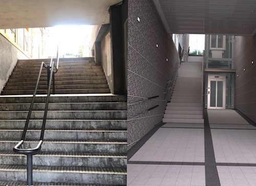 La actuación consistirá en habilitar un ascensor en el paso comprendido entre los portales 4 de la calle Larrabide y el edificio del portal 14 de Luis Urrengoetxea, y que ascenderá hasta la parte alta, frente al portal número 12 de la calle Karmen. En esta actuación, además de la habilitación del ascensor, se eliminarán parte de las escaleras, y se colocará una hilera de escaleras peatonales paralelas para mejorar la accesibilidad. En cuanto al ascensor, donde se ha priorizado la sensación de seguridad para los usuarios, se ha revestido de vidrio excepto donde se coloca la maquinaria, podrá llevar hasta 630 kg (8 personas), y contará con unas dimensiones de 1,40m x 1,10m. Además tendrá una parada intermedia que dará acceso al portal 21 de la calle Karmen, al que hasta ahora sólo se podía acceder a través de escaleras.