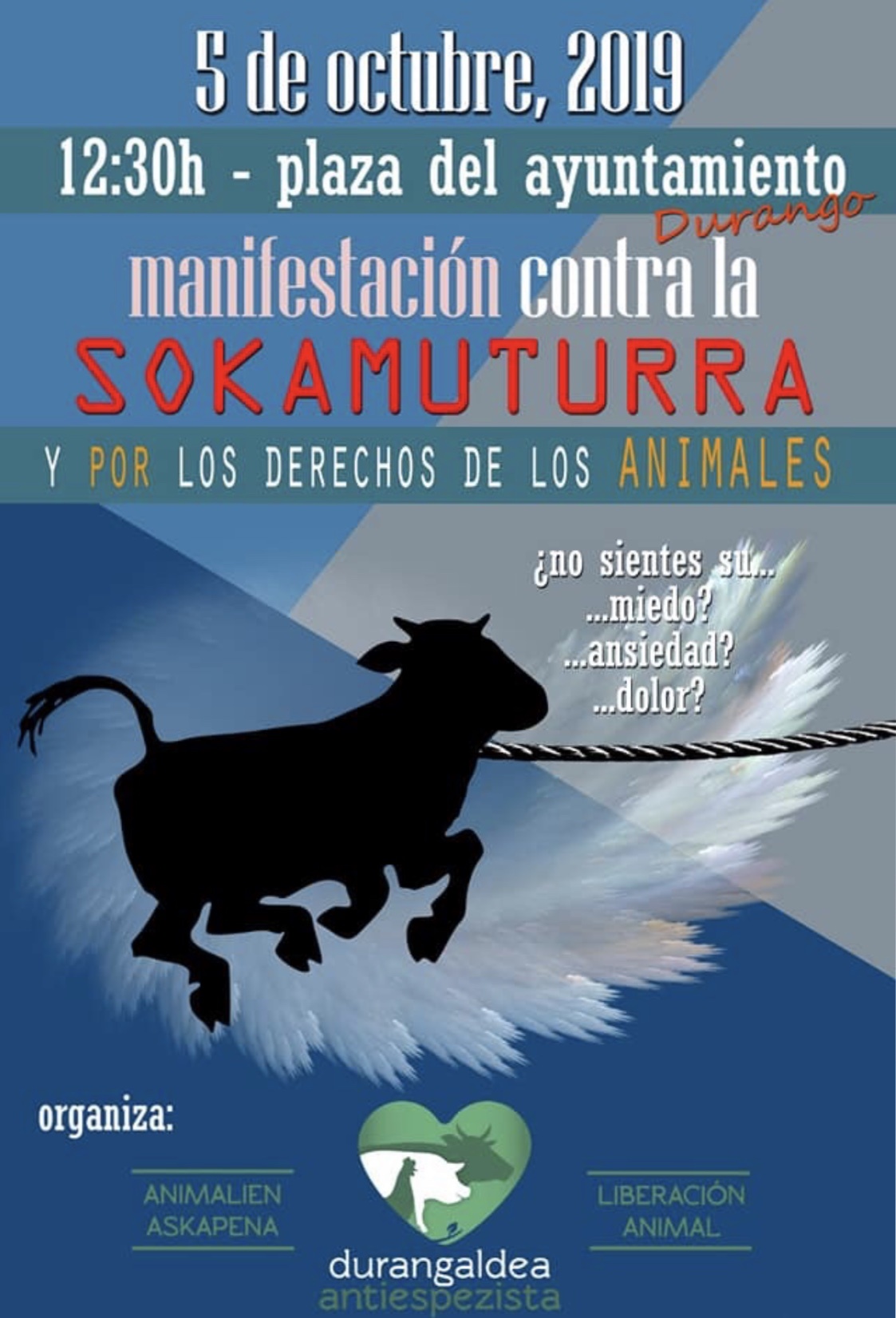 DURANGO.- Se acercan las fiestas y los animalistas están diseñando sus protestas contra las Zezenak Dira de San Faustos. Por ello han previsto manifestarse el próximo sábado 5 de octubre en contra de la sokamuturra y por los derechos de los animales.