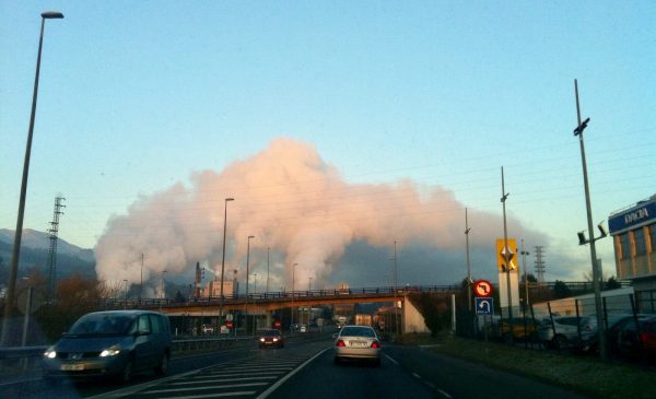 Un lector quiere reflejar a través de esta fotodenuncia el vapor que emitían las chimeneas de la Papelera el pasado miércoles