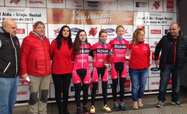 DOT KIROLAK.- Tres corredoras del equipo Bizkaia-Durango han sido las vencedoras de la I Carrera Ciclista de Buitrayo del Lozoya celebrada esta mañana en Madrid y primera prueba puntualble de la Challenge de la Federación de carretera. La primera en llegar a meta ha sido Lorena Llamas, detrás suyo Lourdes Oyarbide y en tercer lugar Roos Hoogeboom. Las tres ciclistas del equipo Bizkaia-Durango han copado el podio de esta mañana, tras un prueba con condiciones climatológicas adversas, con lluvia, viento y niebla.
