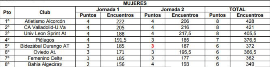 DOT KIROLAK.- Este sábado se celebra en Valladolid la final de ascenso a División de Honor de atletismo, como última jornada de la Liga Iberdrola de la Primera División. Y será ese día cuando el Bidezabal se juegue el ascenso. Los Clubs participantes serán, Atletismo Alcorcón (8 puntos), CA. Valladolid (8 puntos), Universidad de León (8 puntos), Piélagos de Cantabria(7 puntos), Oviedo At.(6 puntos), Femenino Celta(6 puntos) y Bahia de Algeciras (6 puntos), junto con el Bidezabal Durango Atletismo Taldea con 6 puntos.
