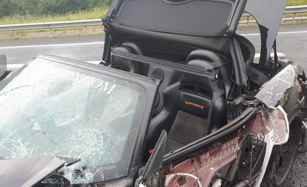 Para los dos ocupantes del Dodge Viper de ayer la ruta acabó en susto, aunque podía ser mucho peor.