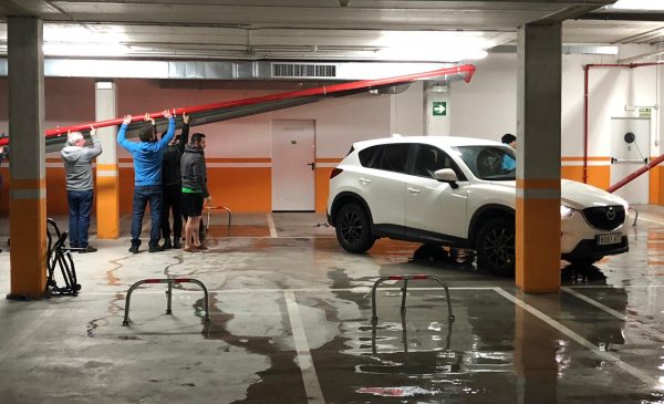 DURANGO.- Los garajes de los Bustintza y Ziritza tuvieron que ser evacuados ayer a la noche tras el reventón de las tuberias. Después de escuchar un fuerte ruido los vecinos bajaron y se encontraron con un panorama desolador. Todos los tubos se habían caído, algunos de ellos encima de los coches y el agua comenzaba a inundar la primera planta. Después de alertar a la policia municipal y a los bomberos, los vecinos sacaron todos los coches de las dos plantas. Según han relatado todo podría haber tenido su origen en la toma contra incendios, que habría reventados originando el caos en los garajes, que han quedado acordonados.