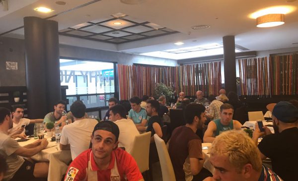 DOT KIROLAK.- La expedición durangarra ha partido hoy a las 8.00 horas de Tabira para iniciar el traslado a tierras andaluzas. Los jugadores, directivos y algún aficionado han puesto rumbo a Ecija con el objetivo de seguir soñando con el ascenso a 2ªB.