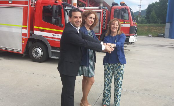 Los diputados forales de Bizkaia, Gipuzkoa y Araba han presentado hoy en el Parque de Bomberos de Iurreta el nuevo acuerdo