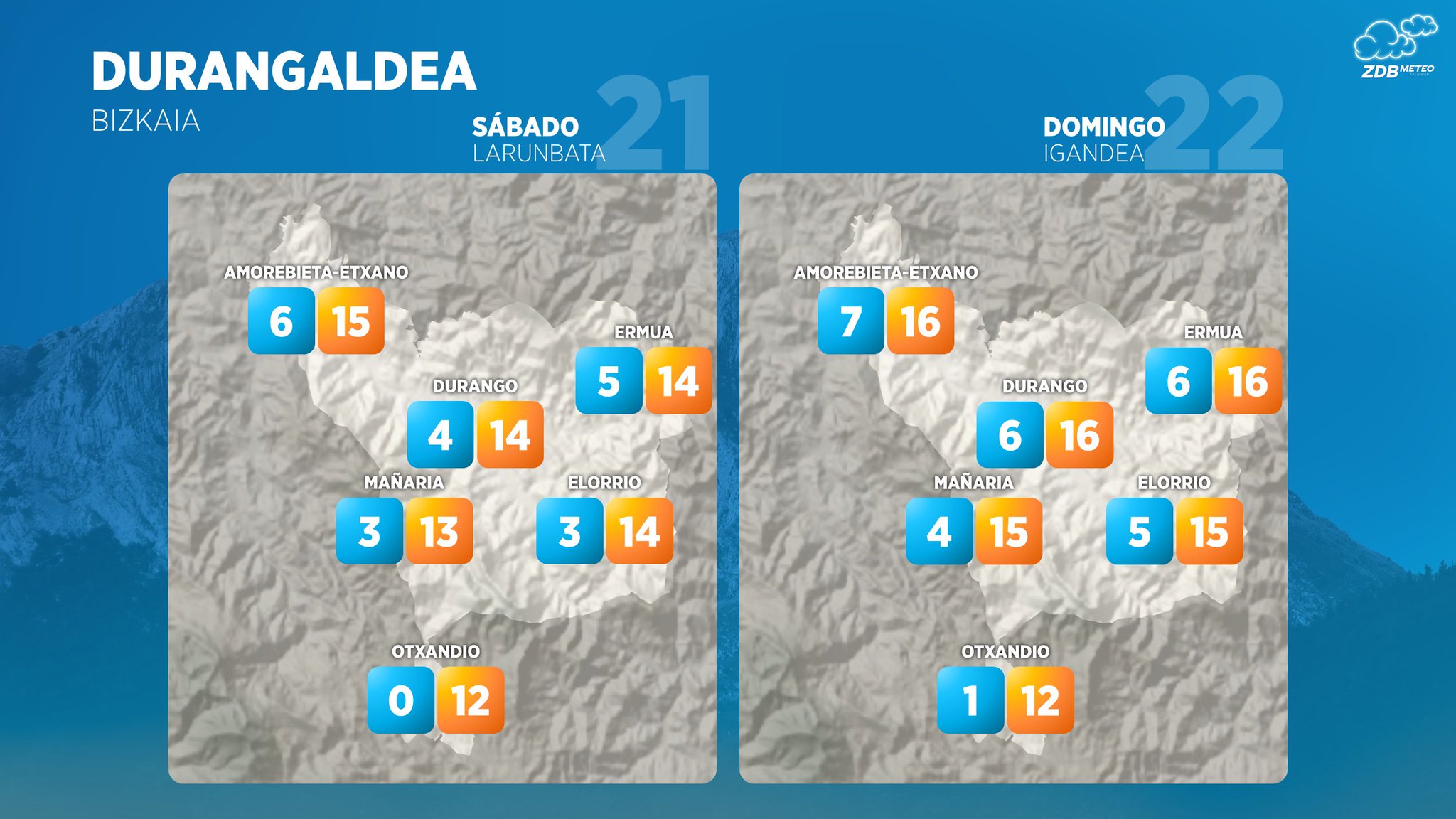 EGURALDIA.- Mañana sábado la situación mejorará, el día comenzará con brumas, nieblas y algunas nubes altas pero rápidamente dará paso a cielos despejados. El viento soplará del este y el ambiente será frío, a pesar de que las máximas podrían subir un par de grados. Las mínimas bajarán ligeramente y se darán heladas de madrugada