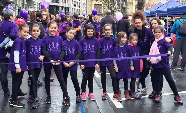 DURANGO.- Desde las once y media de la mañana Ezkurdi se ha ido llenando de gente, niños y mayores, con la ilusión de recorrer Durango en favor de la igualdad. Una vez más y con el propósito de reivindicar el mismo papel social de los hombres y mujeres, 21 colectivos han tomado parte en la nueva edición de Lilakrosa. «Hemen gaude emakumeen alde», era de uno de los lemas que se han podido escuchar, junto al grito de «Lilakrosa!». Se trata de uno de los actos de la programación del 8 de marzo, «Día Internacional de la Mujer». La carrera finalizaba en Santa María sobre las 12:40 minutos.