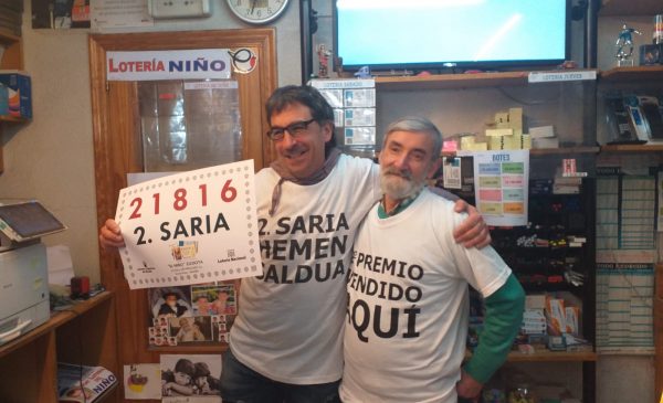 ABADIÑO.- La lotería del Niño ha dejado algo en Abadiño, concretamente en Matiena. Se trata de un décimo del número 21.816, vendido en la librería Petite, en la calle Zubibitarte 11. Cada décimo está premiado con 75.000 euros. Esta mañana nada más conocer la noticia han celebrado el premio.