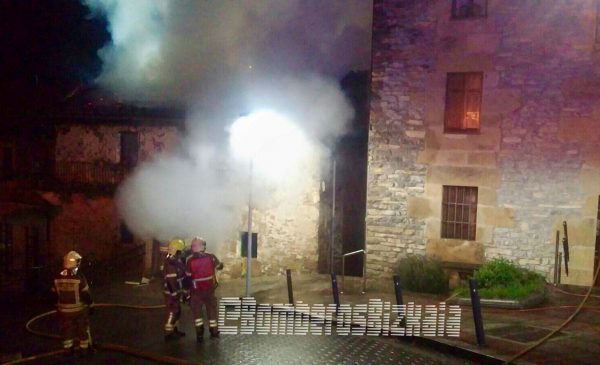 MALLABIA.- Eran las once de la noche cuando una incendio se desataba en Mallabia, tan solo dos días después de haber sufrido otro importante incendio en una empresa de la localidad. En esta ocasión tres inmuebles han resultado dañados. Además una persona ha tenido que ser atendida en el lugar por inhalación de humo, aunque no ha sido necesario su traslado según ha informado el departamento de Seguridad. Los hechos comenzaban a las 23:25 horas, cuando al parecer según los primeros indicios el fuego se desataba en la chimenea de una de las viviendas de la calle Kalbario. Un fuego que ha afectado a tres inmuebles, llegando incluso a dañar la Kultur Etxea.