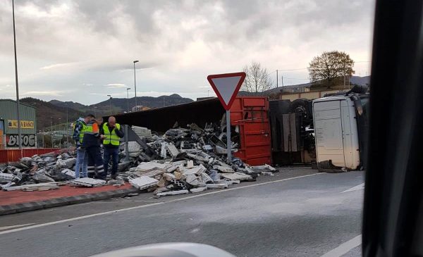 ABADIÑO.- Sobre las ocho y media de la mañana un camión ha volcado en la rotonda de Abadiño, en la N-634. Los servicios de emergencia se encuentran en el lugar y se pide precaución ya que se están produciendo algunas retenciones.