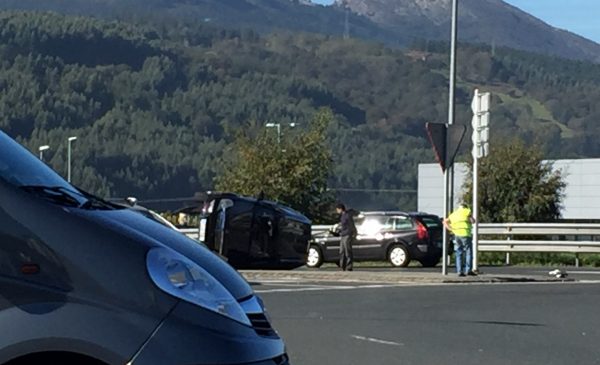 IURRETA.- Una persona ha resultado herida tras volcar el coche que conducía en el acceso a la AP-8 en Iurreta este mediodía. Al parecer han colisionado un camión y el turismo, y este último tras golpearse contra la mediana ha volcado. Según ha informado el departamento de Seguridad, el conductor del coche se quejaba de dolor en el hombro.