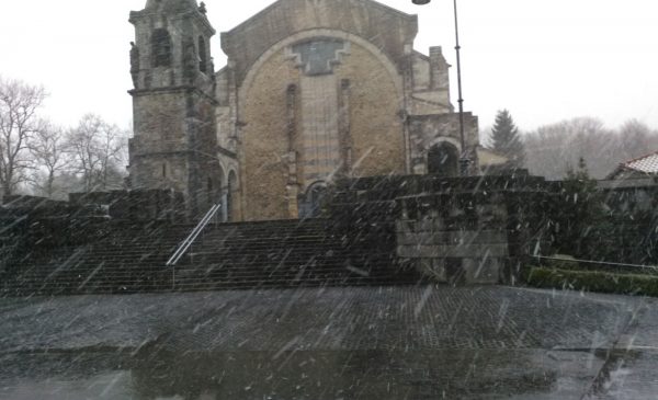 EGURALDIA.- No ha sido un invierno copioso y la primavera se ha estrenado con cielos encapotados y hoy algo de nieve. Tal y como estaba anunciado la nieve ha rozado los 700 metros y así ha sido. Sobre las seis de la tarde ha comenzado a nevar y ha blanqueado ligeramente el entorno. No parece que vaya a caer mucho más, puesto que las previsiones indican que las precipitaciones irán a menos y la nieve mañana se situará por encima de los 1.00o metros. También ha nevado ligeramente esta tarde sobre Otxandio.