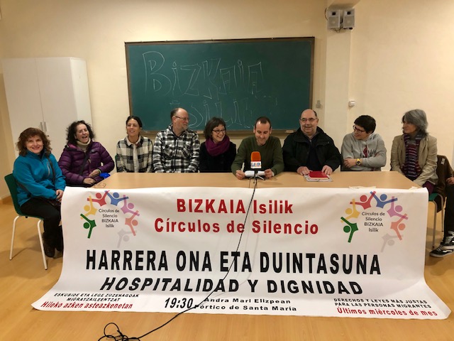 DURANGO.- Varias agrupaciones de Durango, Unidad Pastoral Tabira, Caritas Tabira, HOAC, CVX, FE y Justicia Durango, Jesuiten Etxea, San Antonio Santa Rita Ikastetxea, Maristak y San Jose Ikastetxea, han decidido unirse al movimiento ciudadano Círculos del Silencio-Bizkaia Isilik. Se trata de un acción que se celebrará todos los últimos miércoles de cada mes, comenzando este próximo 26 de diciembre a las 19;00 horas en el Pórtico de Santa María, que intenta, a través del silencio, mostrar la solidaridad a las víctimas de las migraciones. «Buscamos apelar a la conciencia de quienes hacen las leyes, de quienes las aplican y de aquellas en cuyo nombre son hechas, para hacer posible una política más respetuosa con la dignidad de las personas», explica Egoitz Zabala, portavoz.