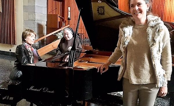 DURANGO.- El colegio San Antonio sigue celebrando el 150 aniversario con actos, cuando menos muy entrañables y llenos de emotividad. Esta mañana han tenido lugar los ensayos donde no han faltado lágrimas, sobre todo cuando a aparecido Sor Maria Teresa, que a sus 83 años recordaba perfectamente la vida y el paso de las ex-alumnas, como la soprano Vannesa Goikoetxea y la pianista Elena Orobiogoicoechea. Una y una, y uno a uno ha llamado a cada uno por su nombre y ha comentado sentirse muy emocionada por encontrarse con tanta gente conocida. «Casi no puedo ni hablar de la emoción, Pensaba ver el concierto de mañana desde el coro pero creo que estaré en primera fila», ha explicado. Mientras Vannesa, entre lágrimas, ha señalado que «el concierto de mañana tendrá un carácter muy humano, porque fueron muchos años y fue aquí donde aprendí», recordaba. En la misma línea Elena Orobiogoicoechea, decía estar «muy contenta ante el concierto que han preparado mañana, con gente conocida, grandes amigas, ex-alumnas y monjas como Sor Maria Terresa que tanto les enseñó».