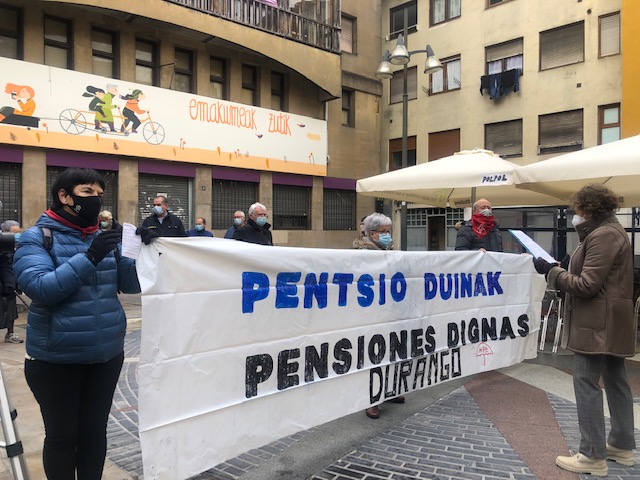 Por ello, el próximo lunes, 18 de enero, los y las pensionistas de Durango se manifestarán por las calles del municipio y leerán un manifiesto en un momento en el que con la llegada de la pandemia aseguran tener más razones que nunca para «seguir en la pelea; hemos tomado conciencia de la enorme importancia de la sanidad y de los cuidados. Por ello, a lo largo del año pasado, tanto autónomamente, como en diversas ocasiones conjuntamente, hemos impulsado y participado en movilizaciones con los familiares de las personas residentes, sindicatos y movimientos sociales».