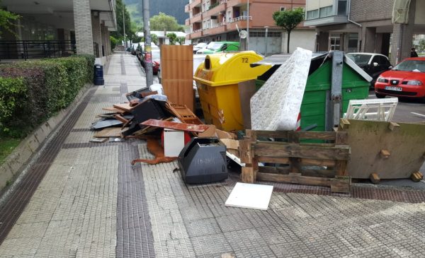 DURANGO.- Ha ocurrido esta tarde en la calle Iparragirre de Durango cuando, como se puede ver en la imagen, un montón de desechos de muebles ocupaban la acerca. Al parecer ha sido entonces cuando un niño se ha tropezado con una de las maderas y ha caído clavándose un clavo. «De verguenza!» denunciaba este seguidor de DOT a través del mensaje enviado al canal de Whatsapp 656182430.