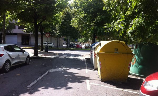 Imagen de los contenedores al lado del paso de peatones