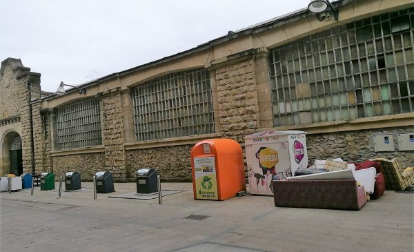 ZUREDOT.- Desde DAZ -Durangoko Alde Zaharra- hacen llegar a DOT, a través del canal de Whatsapp, 656182430, una nueva queja de los vecinos de la calle Monago Torre, situado detrás de la plaza del mercado. «Así todo el fin de semana. ¿Quién es el responsable de controlar y tomar cartas en el asunto?, en referencia a varios sofás y contenedores llenos en este punto.