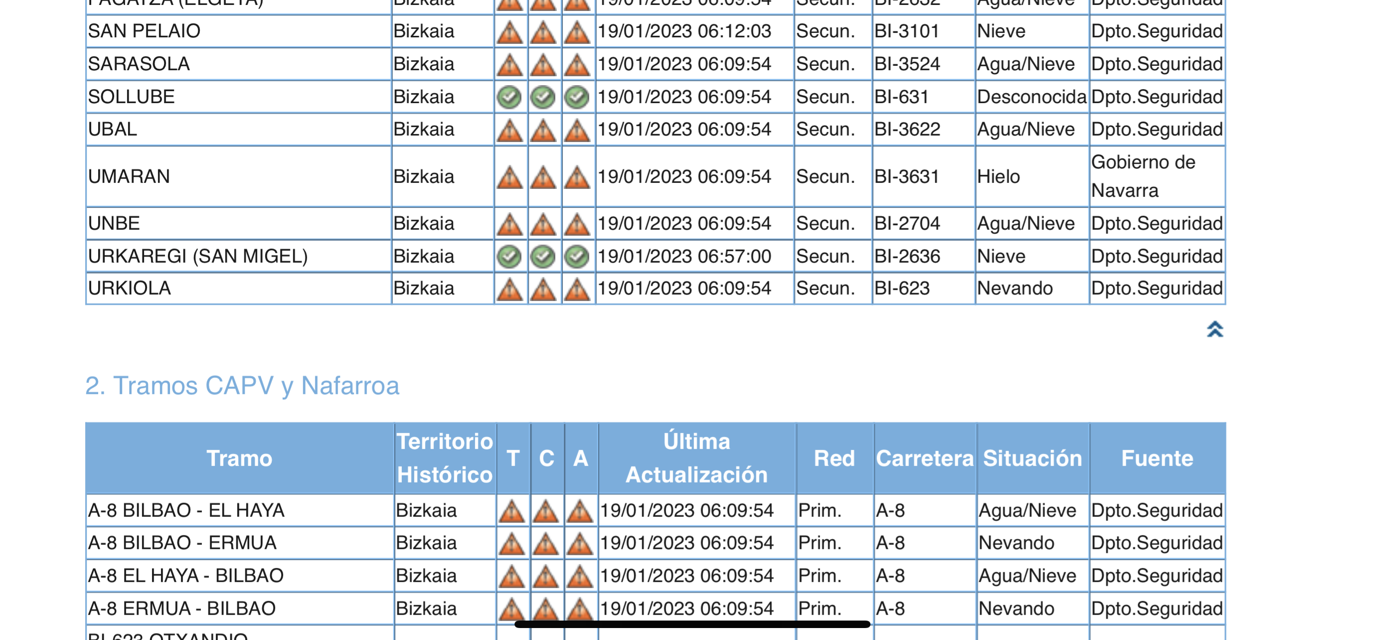 Situación de las carrteras