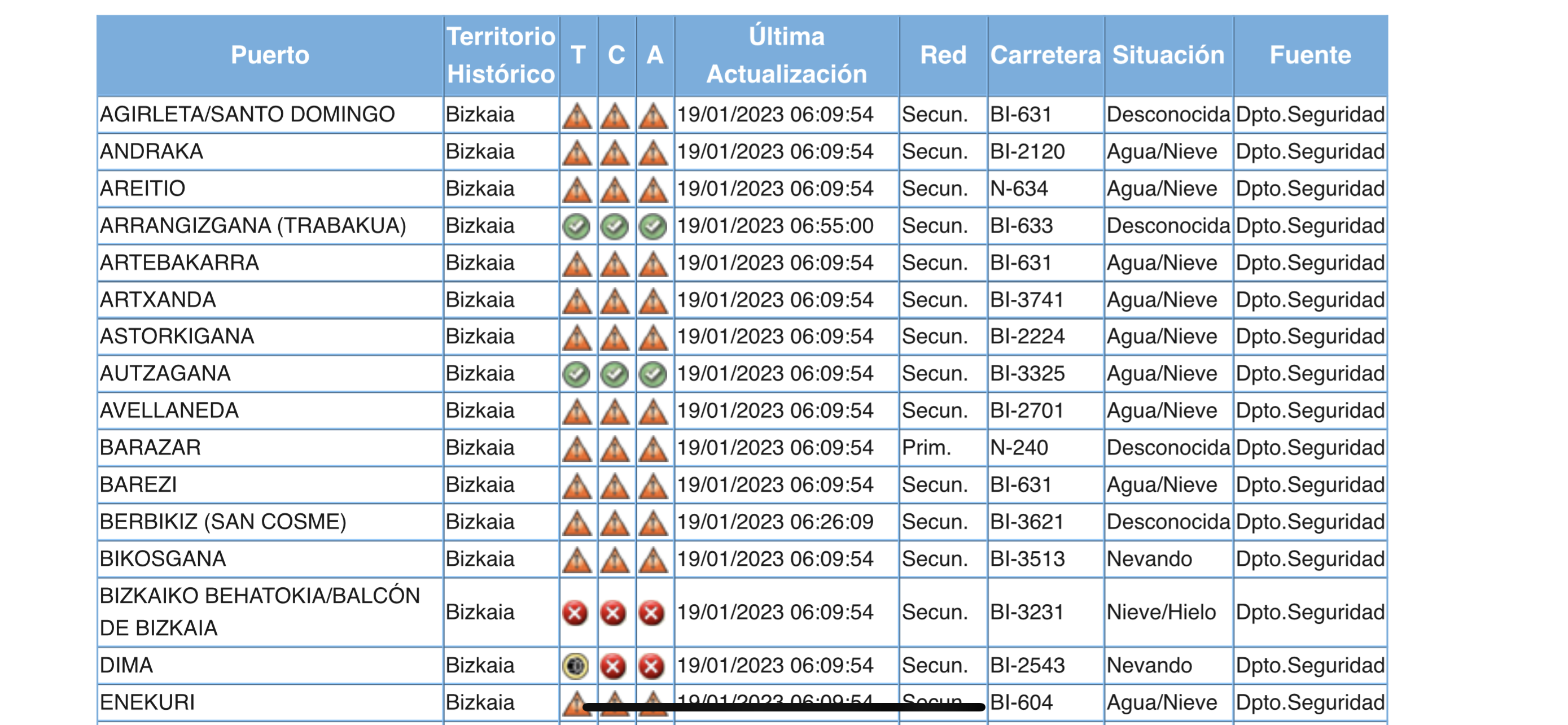 Situación de las carrteras