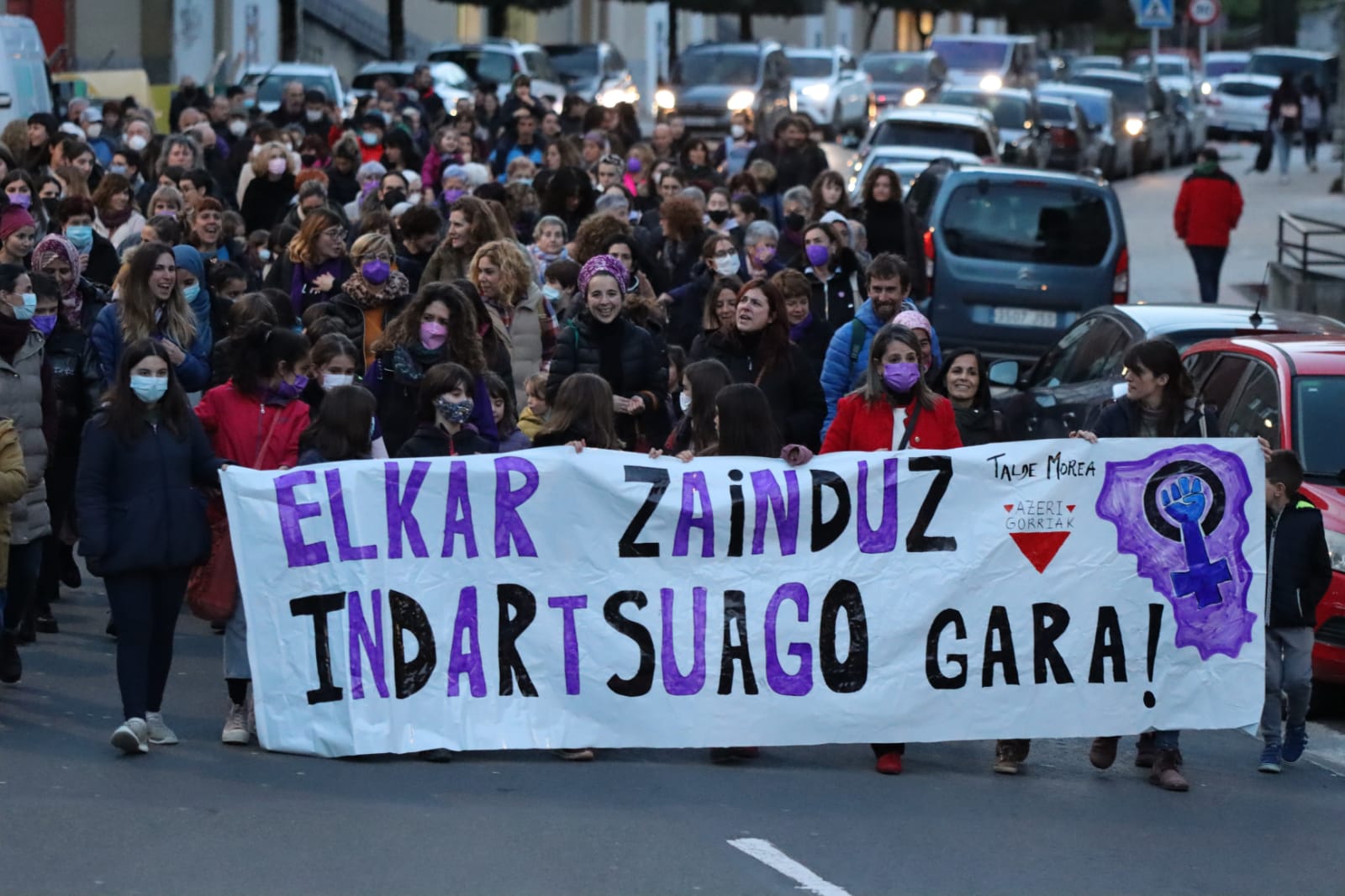 En Iurreta se ha llevado a cabo esta mañana y a la tarde un cadena morada, tras la lectura de la declaraciones institucional. Y para finalizar la jornada municipios como Berriz o Durango se han recorrido las calles en sendas manifestaciones.