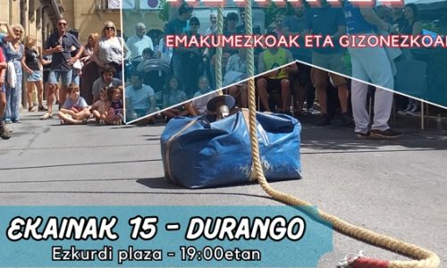 DURANGO | En el marco de las Euskal Jaiak que se celebran en Durango, este sábado, próximo 15 de junio, se celebrará el levantamiento de fardos de paja donde los participantes deberán levantar en 2 minutos los fardos de 45 kilos a una altura de 7 metros.