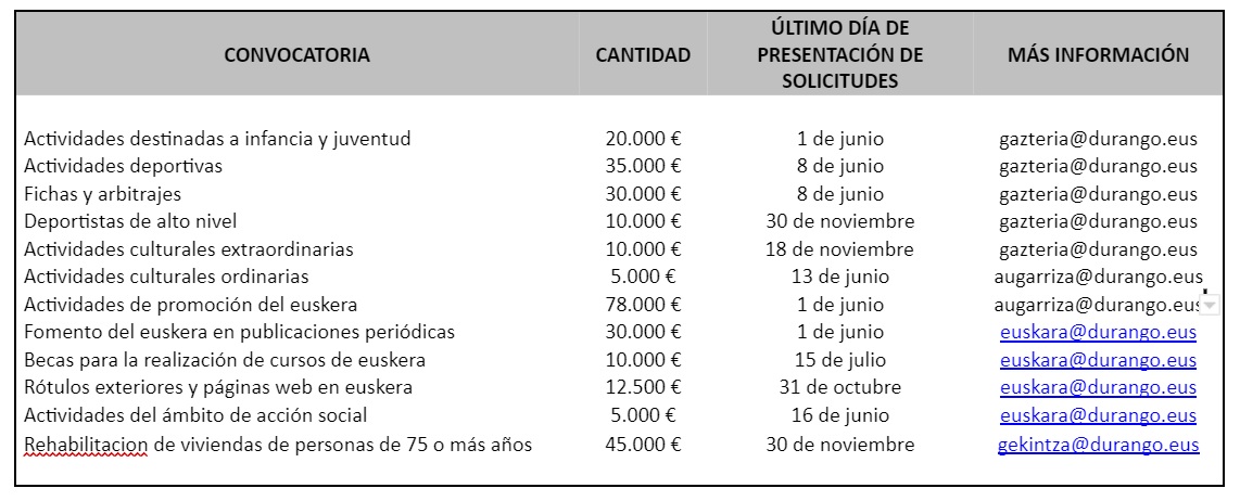 Más información: www.durango.eus/subvenciones