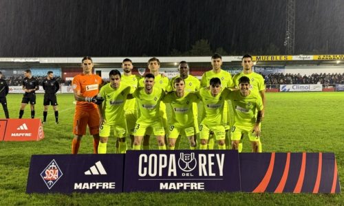 Bajo una incesante lluvia y sobre un terreno de juego irregular, el choque arrancaba igualado e intenso. Cada balón dividido, una gran batalla. Las defensas se imponían, de modo que Berto y Aurtenetxe probaban con disparos desde fuera del área que no encontraban premio en el primer tramo del partido. También lo intentaban desde el borde del área el local Albín con un tiro que obligaba a Marino a mancharse. Rebasada la primea media hora era Marín el que buscaba abrir la lata con otro latigazo lejano, pero se iba por encima del travesaño. En el 38 ambos conjuntos protagonizado buenos avisos. Marino detenía una buena oportunidad de De Mesa y, acto seguido, un cabezazo de Marín lo atrapaba el guardameta local Arnau. El último de la primera mitad lo daba Coulibaly con un misil que se marchaba fuera. Así, el partido alcanzaba el descanso con 0-0 en el marcador.