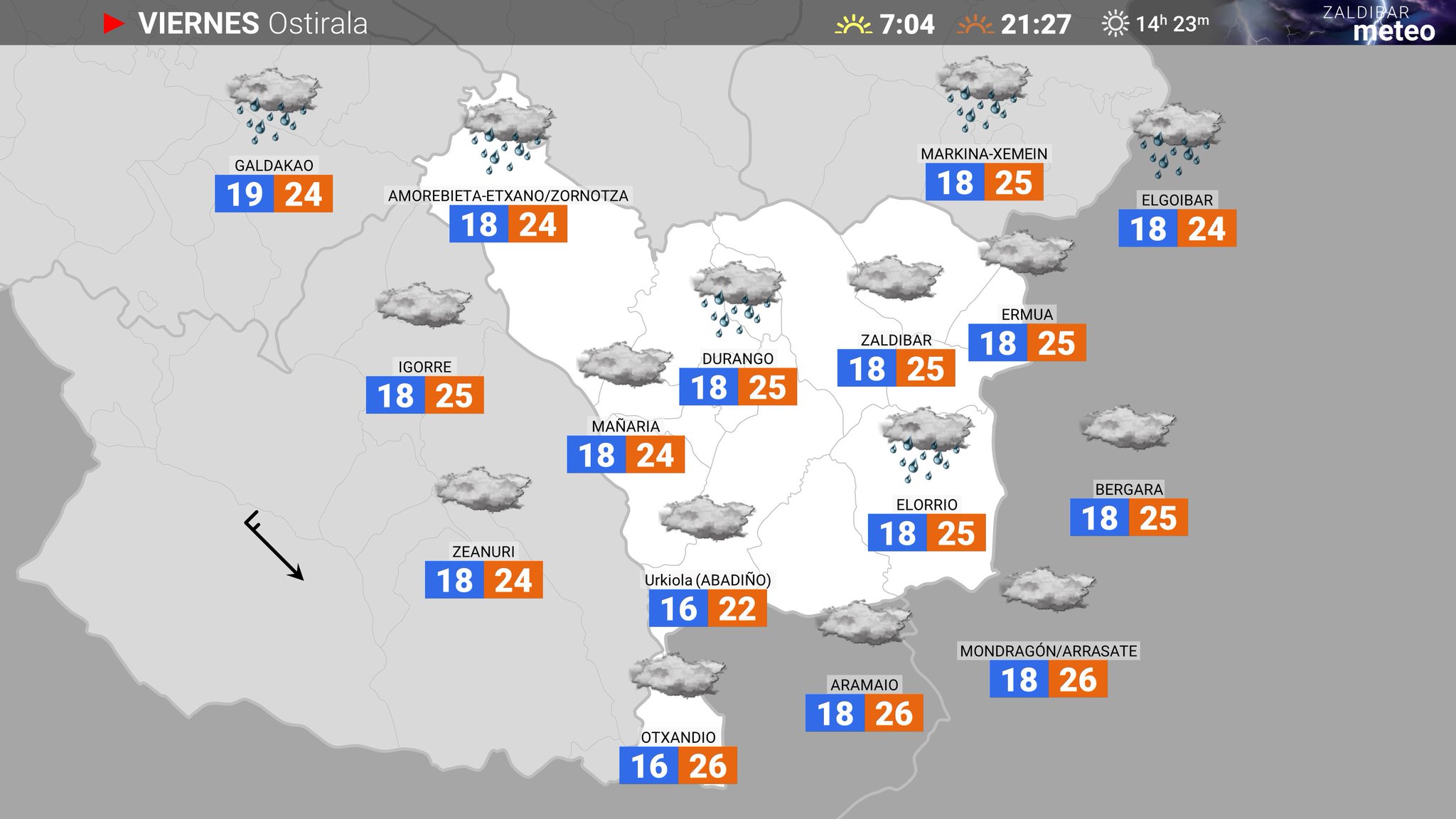 EGURALDIA | El fin de semana, sábado y domingo, se presenta bastante veraniego. Pero de momento la jornada del viernes se presenta algo más gris aunque con el paso de las horas los claros serán más abundantes. Todo ello con unas temperaturas que aunque hoy bajen hasta los 25, repuntarán llegando hasta los 29/3o durante el sábado y domingo.