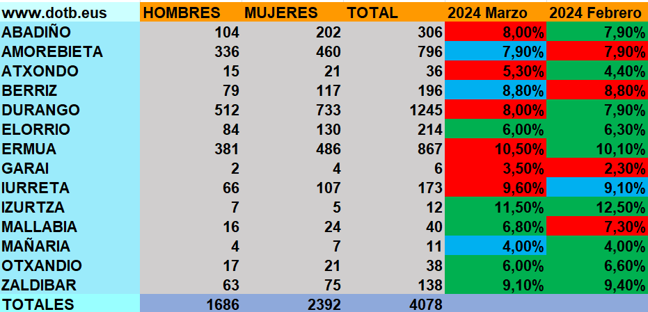 Salvo en dos, Ermua e Izurtza, se mantienen por debajo del diez por ciento con porcentajes entre un seis y un ocho por ciento, como es el caso de Amorebieta y Durango.
