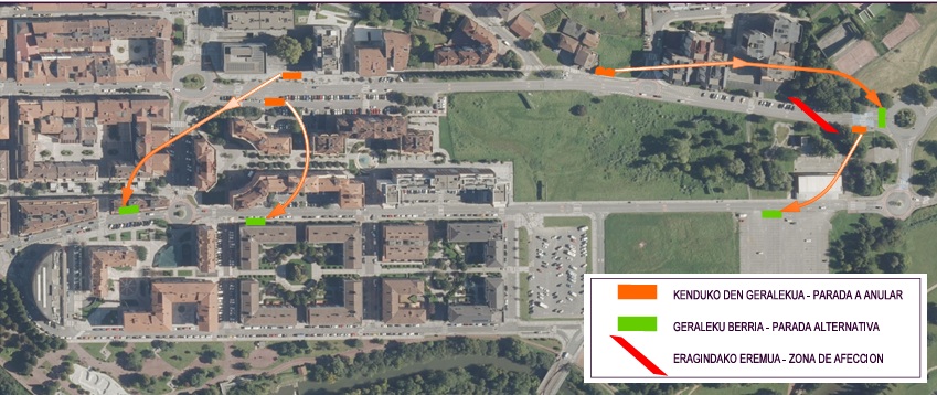 Como consecuencia de este cierre, se suprimen y trasladarán varias paradas de autobús que afectan a las líneas 3911 y 3912 de Bizkaibus: