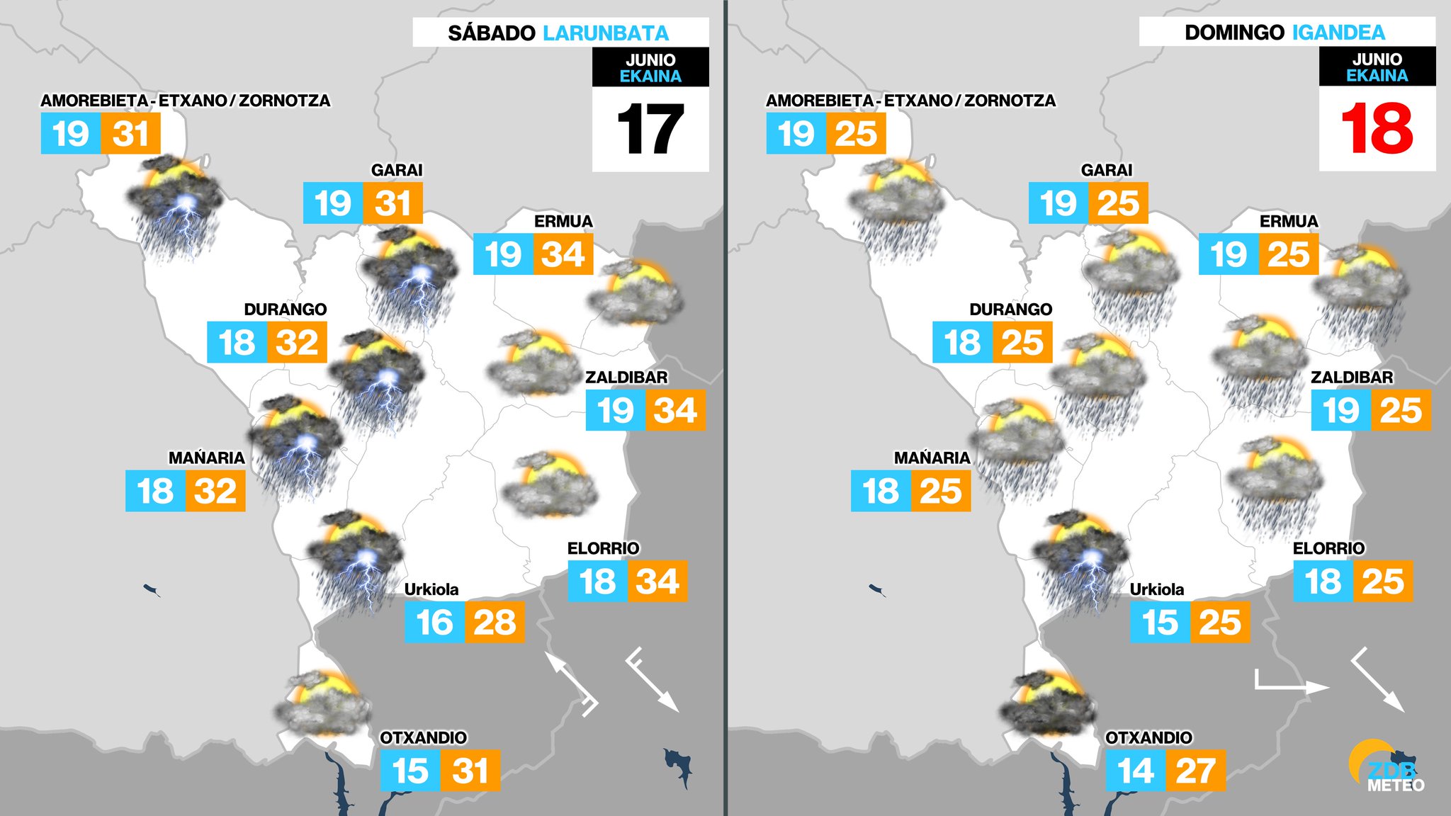 EGURALDIA | El calor será el protagonista durante este fin de semana en Durangaldea con temperaturas de superarán los 30 gradosl, sobre todo el viernes y sábado. El domingo bajarán las temperaturas, se quedarán en torno a los 25 grados y aumentará la inestabilidad con posibilidad de tormentas.