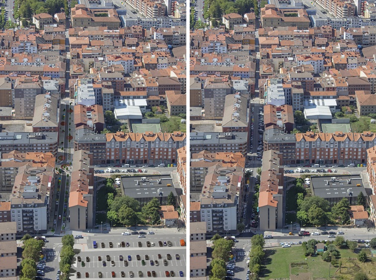 A la izquierda la infografía muestra la reurbanización de Antso Estegiz y el nuevo aparcamiento; a la izquierda como está en la actualidad