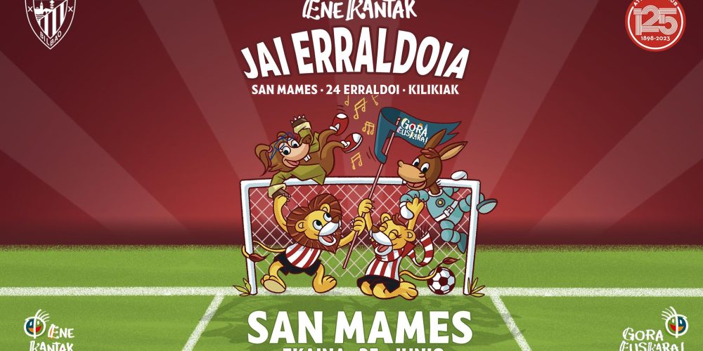 EUP! | El Athletic Club y Ene Kantak celebrarán el próximo 25 de junio, domingo, en San Mamés una edición especial de su célebre Jai Erraldoia. Los athleticzales más txikis podrán así celebrar el 125 aniversario del club con sus canciones, gigantes y kilikis favoritos. Un total de 24 gigantes de 5 comparsas acompañarán a Eneko, Nerea, Astonauta y Satorjator en el escenario para que el público no pare de bailar y cantar durante el espectáculo. El festival comenzará a las 17.00 horas y las puertas de San Mamés se abrirán a partir de las 16.00 horas. Todavía se pueden adquirir entradas en la web oficial del club (www.athletic-club.eus).