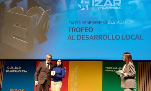 De esta manera, el premio de Desarrollo Local, otorgado por IZAR Cutting Tools y entregado por su director gerente, Oscar De Manuel, fue para Ainara Delgado y su video llamado “Economía Social”. Hay que destacar que este trabajo audiovisual también se llevó uno de los EKOS de Oro, los premios más relevantes.