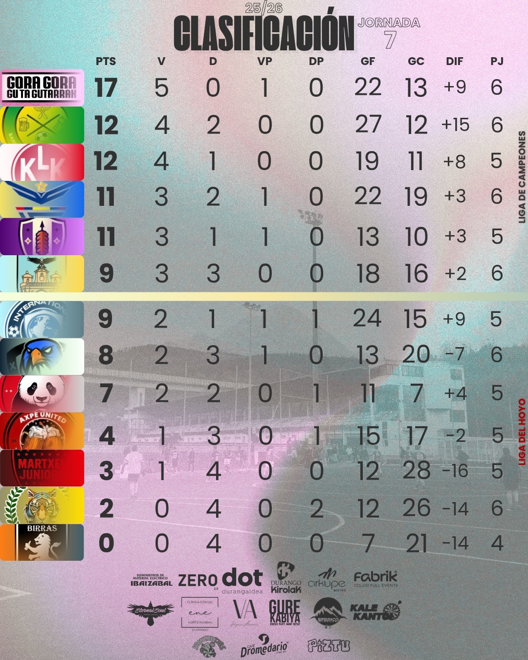 KING DURANGO | La séptima jornada de la Kings Durango ha dejado la clasificación más apretada que nunca. Con la fase regular acercándose a su recta final, cada punto es oro, ya que los seis primeros clasificados accederán a la llamada «Liga de los Campeones», donde jugarán entre ellos para definir los puestos de cara al playoff. El resto de equipos competirán en la «Liga del Hoyo», en la que también jugarán entre ellos y solo los dos primeros obtendrán billete para los playoff finales.