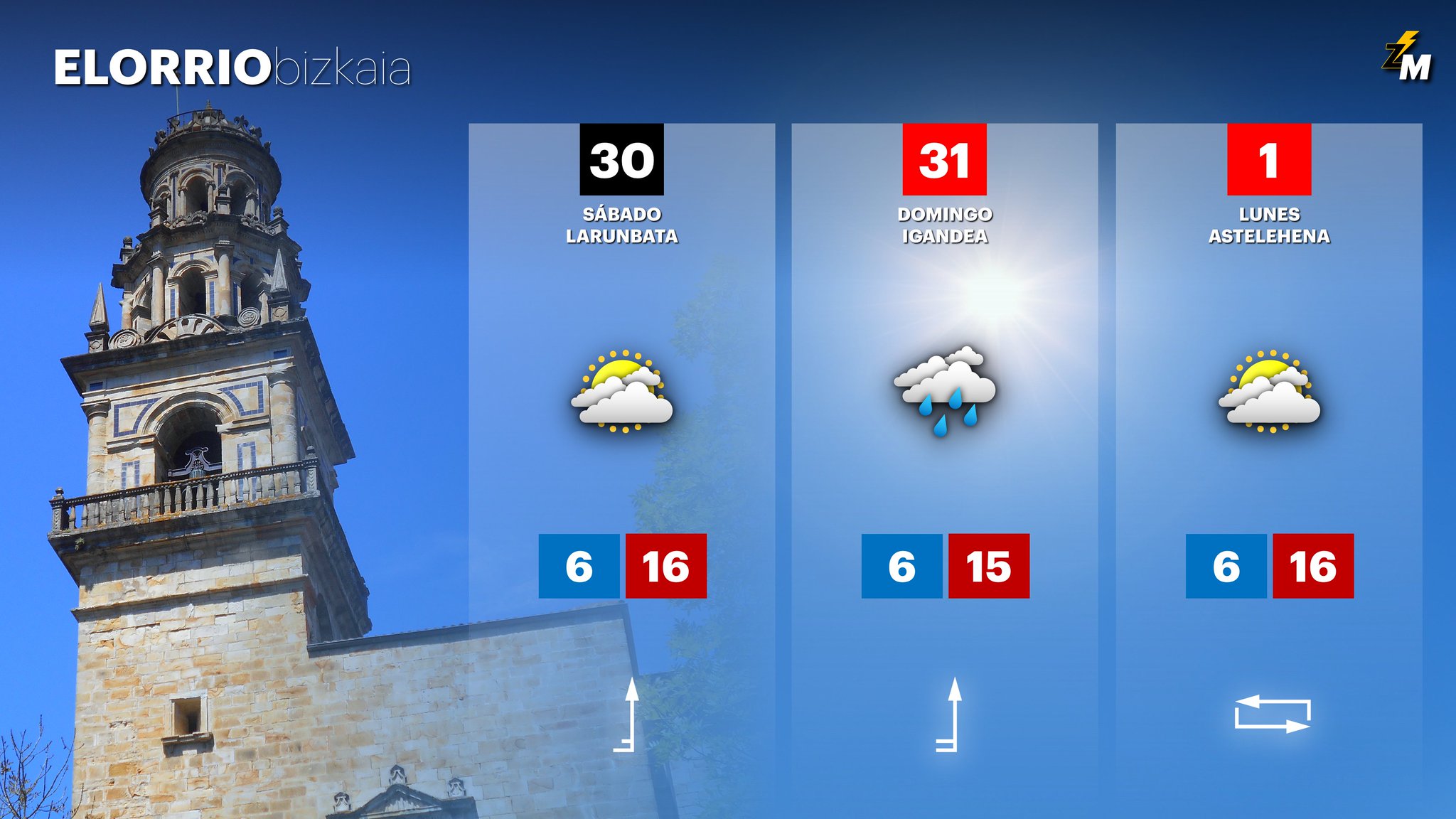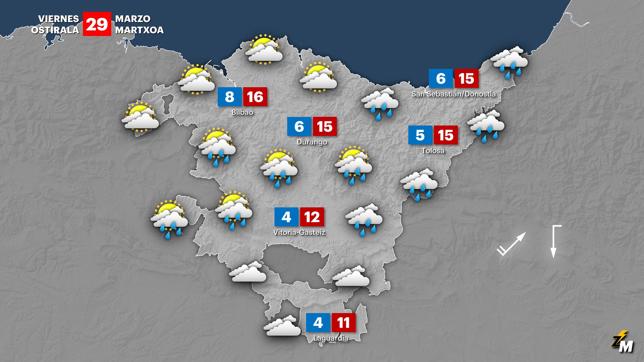 EGURALDIA | Sin cambios significativos en cuanto al tiempo. Seguirá bastante revuelto con momentos más soleados, otros con más nubes y puntualmente podrá llover también. El viento sur de los últimos días amainrará y las temperaturas descenderán, con máximas de 15 grados en la comarca.