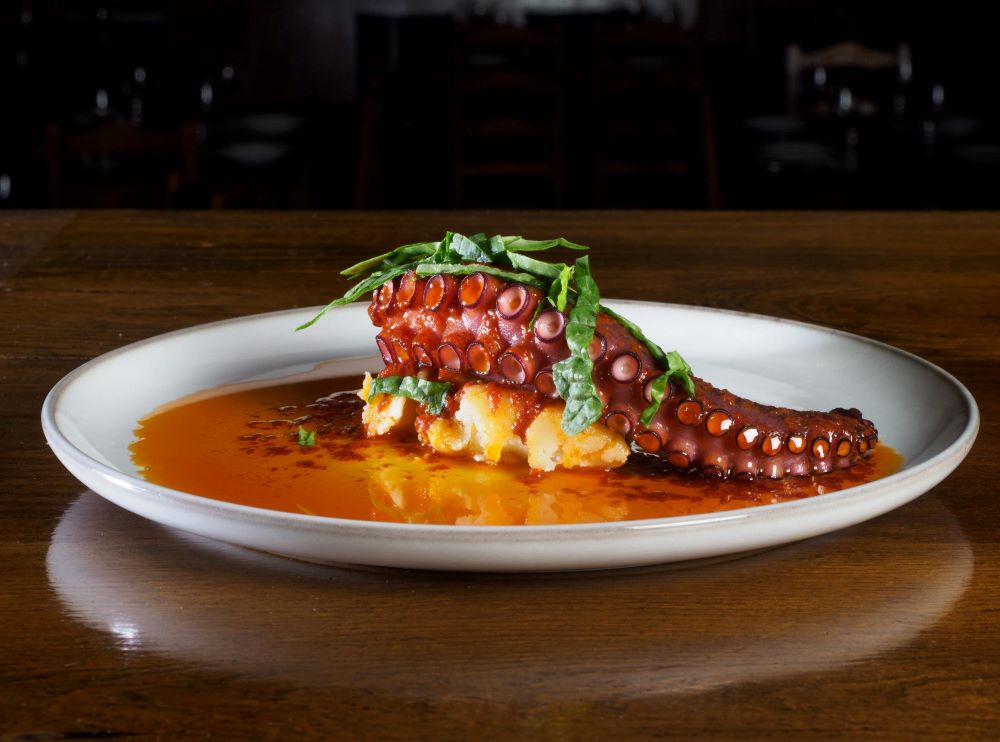 En lo que a la carta se refiere, algunas de las recetas más exitosas son el bacalao negro con crema de pimiento asado, el pulpo lacado a la brasa, berenjena frita con miel de caña o la ensalada de burrata con tartar de berenjena y mouse de aguacate. Mención especial también a la picaña de ternera a la brasa con salsa de foie, los sábados, domingos y festivos de 12.30 a 14.30 horas, chopitos y rabas con el tradicional pintxo-pote los jueves de 19.30 a 21.30 horas.