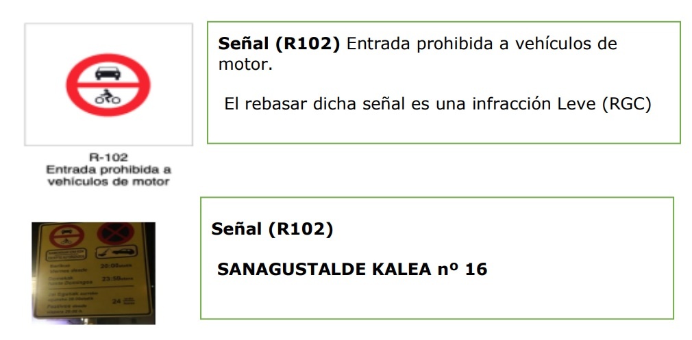 ¿Cómo señaliza el Ayuntamiento de Durango la entrada prohibida a dichas zonas? Con la señal (R 102)