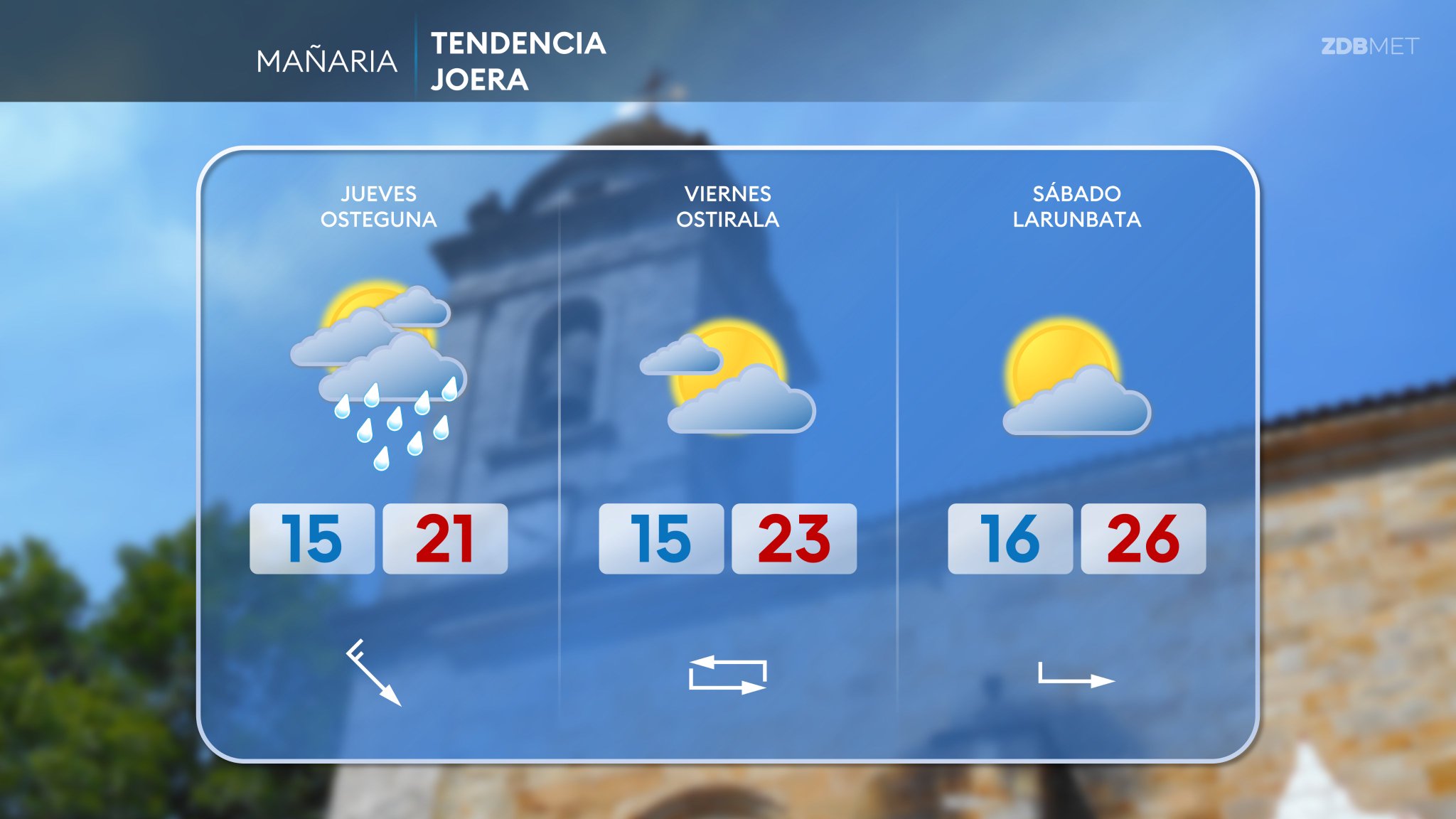 EGURALDIA | El miércoles aumentará la inestabilidad y la bajada de las temperaturas será generalizada. Estará cubierto en la mitad norte, mientras que por el sur aumentará la nubosidad en el transcurso del día. Las lluvias serán más intensas durante la segunda mitad del día, pueden ser localmente intensas y tormentosas en el este. Predominarán los vientos del norte y noroeste, aunque durante los primeros compases del día aún seguirá vigente el sureste en el Valle del Ebro. Las temperaturas seguirán a la baja y las máximas se quedarán por debajo de los 30 °C en el sur y no llegarán a los 25 °C en muchas zonas del norte.